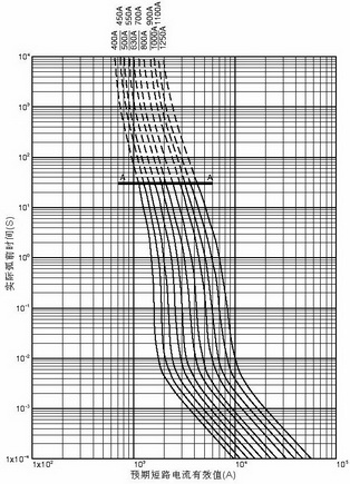 弧前時(shí)間具體值可從圖五查得。可以查到額定電流800A的快速熔斷器,當(dāng)短路電流為13222A時(shí),弧前時(shí)間<2mS;當(dāng)短路電流為99165A時(shí),弧前時(shí)間< 0.1mS。