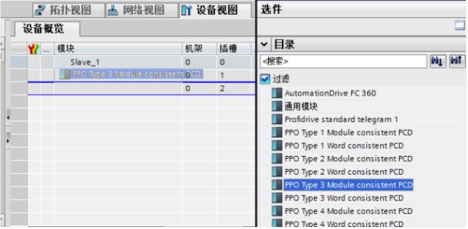 選擇合適的 PPO 模塊,將其拖動到插槽一的位置。例如下圖選擇 PPO Type3 Module consistent PCD,左鍵選擇拖動到插槽一位置釋放。