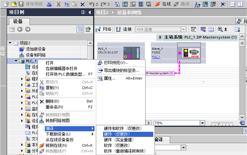 七、:配置丹佛斯變頻器(進入‘網絡視圖’-打開右側‘硬件目錄’-選擇‘其他現場 設備’-‘PROFIBUS DP’-‘驅動器’-‘DANFOSS DRIVESA/S’-‘DANFOSS’-‘FC300’-‘FC300’-‘FC300’),將其如圖七所示拖動。