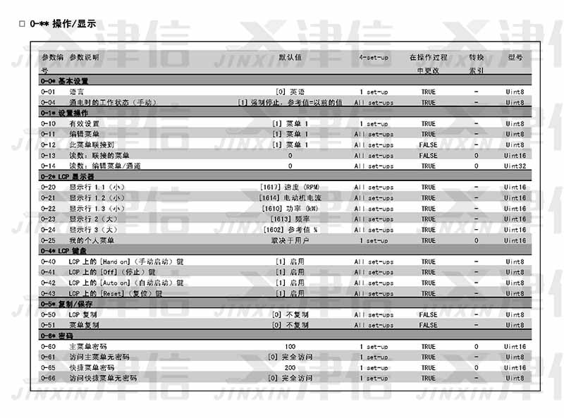 1、0-** 操作/顯示參數設置