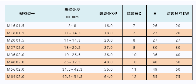 電纜填料函推薦采用船用電纜TJ型防水填料函和相應規格尺寸的GMP尼龍螺母,其中TJ型夾緊式填料函采用黃銅鍍鎳外殼和硅橡膠芯套,能夠滿足IP68防護等級,適用于船舶、造船行業的使用標準。GMP尼龍螺母可以工作于-40℃至100℃,能滿足對電纜線徑范圍在3-90mm的緊固和密封。