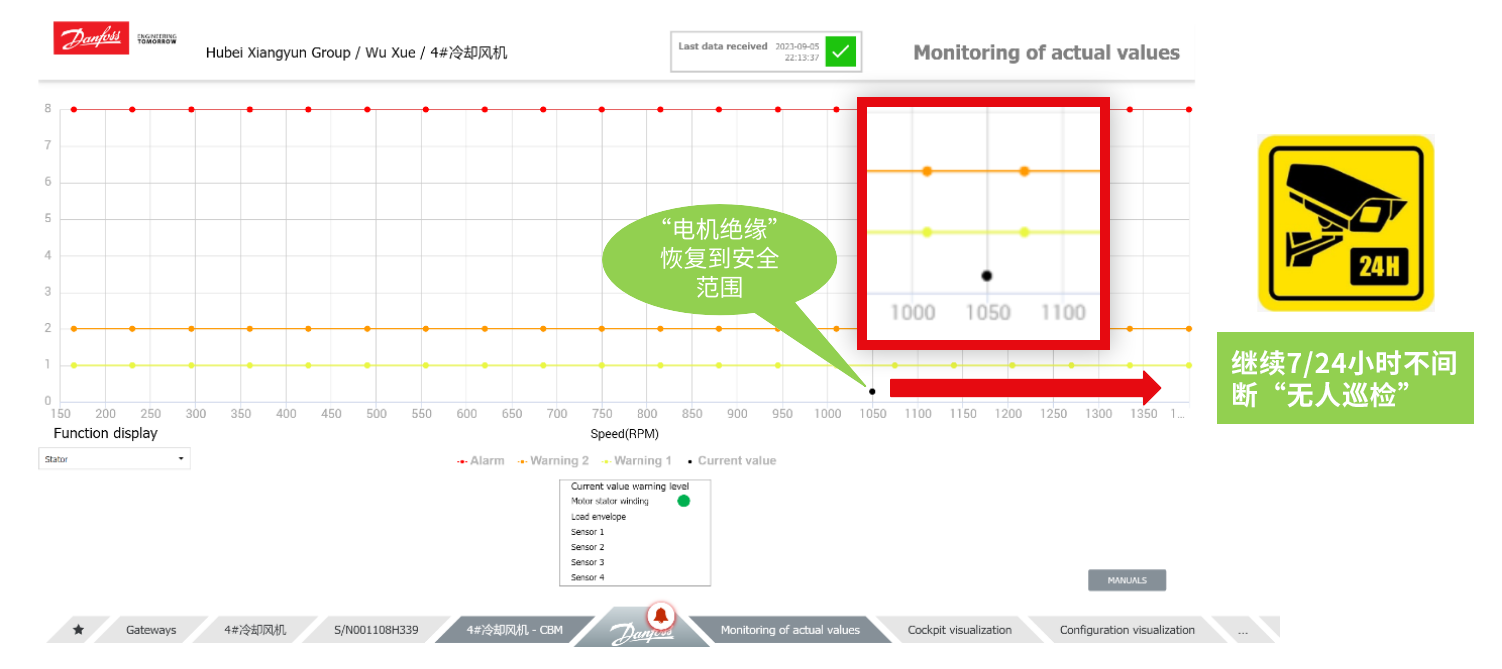 改造方案的目的是讓現場技術人員能夠對系統進行實時監控,同時可以提前預警,防止非計劃停機。祥云化工最終同丹佛斯達成一致,合作開發數字化解決方案,增加丹管家+CBM(電機繞組絕緣,電機負載包絡),并于2021年年底正式上線。