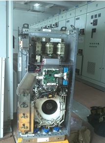 該變頻器更換逆變模塊,將板卡及電容箱依次安裝后,測試,符合上電條件。給變頻器送電,開機(jī)、輸出電壓平衡,帶負(fù)載到額定電流,變頻器發(fā)熱也正常,該變頻器修復(fù)。