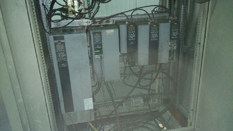 上海津信變頻器技術服務中心派遣技術服務工程師抵達現(xiàn)場后,確認了該公司描述的現(xiàn)象。并對變頻器參數(shù)優(yōu)化、軟件版本進行升級,但未完全解決問題。工程師觀察變頻器工作現(xiàn)場,現(xiàn)場環(huán)境非常惡劣,控制柜也無任何密封等級可言,拆開變頻器后發(fā)現(xiàn)內部器件包括霍爾上吸附了厚厚的粉塵其中相當一部分是金屬粉塵,這就引起霍爾電流檢測不正常出現(xiàn)了A14接地故障。