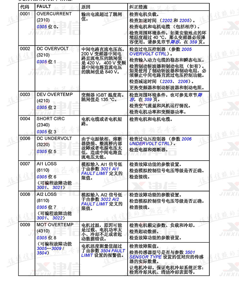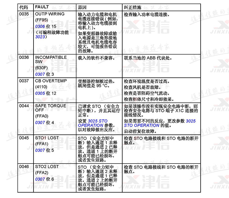 ABB ACS355變頻器故障代碼和應對措施