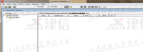 應(yīng)用宏刷入成功后通過參數(shù)S6.2選擇該應(yīng)用宏,然后通過NCDrive軟件和變頻器通訊,通訊成功后如下圖所示