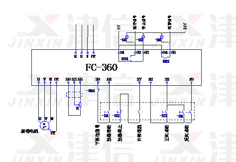 此應用事例中,放線架配置了升降臺,用于裝載和卸下放卷盤,升降臺只允許在放卷停機時進行操作。為避免在運行過程中誤操作升降臺,使用FC360的繼電器2在運行時輸出一個信號給控制升降臺回路中的繼電器,放卷運行時斷開升降控制回路,從而保證升降機不被啟動。